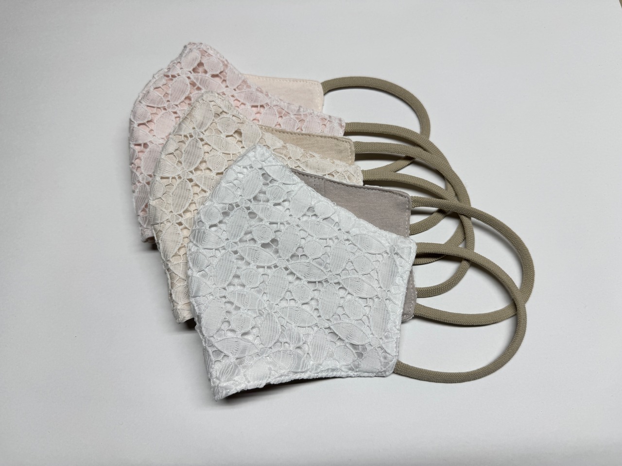 レースがエレガントな、お肌に優しい綿100%のマスクです。